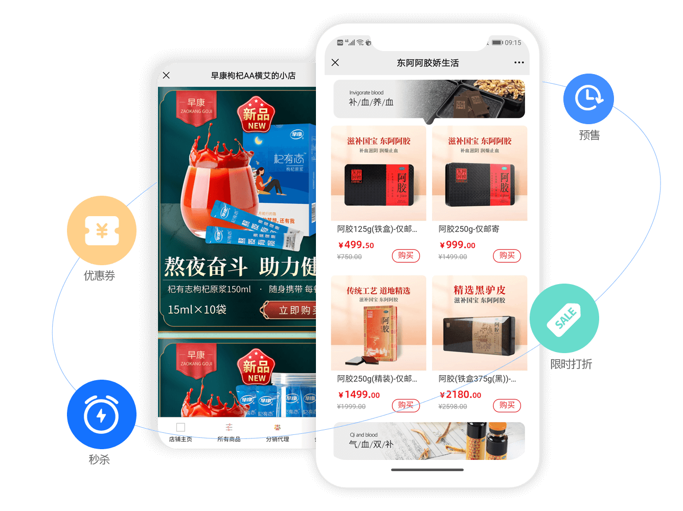 以分销裂变为核心,帮助商家快速拓客,有效获客实现持续购买